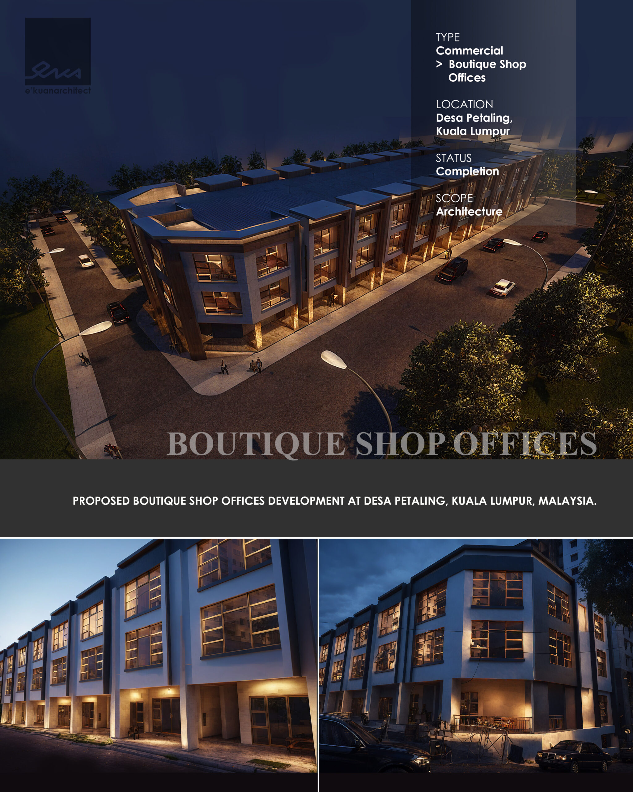 Established since 2009, e’kuan architect founded by Ar. Eric Kuan, former In–house architect for renowned Developer Perdana ParkCity. Our range of projects includes single dwelling homes, residential, industrial and commercial developments to mixed development town planning.